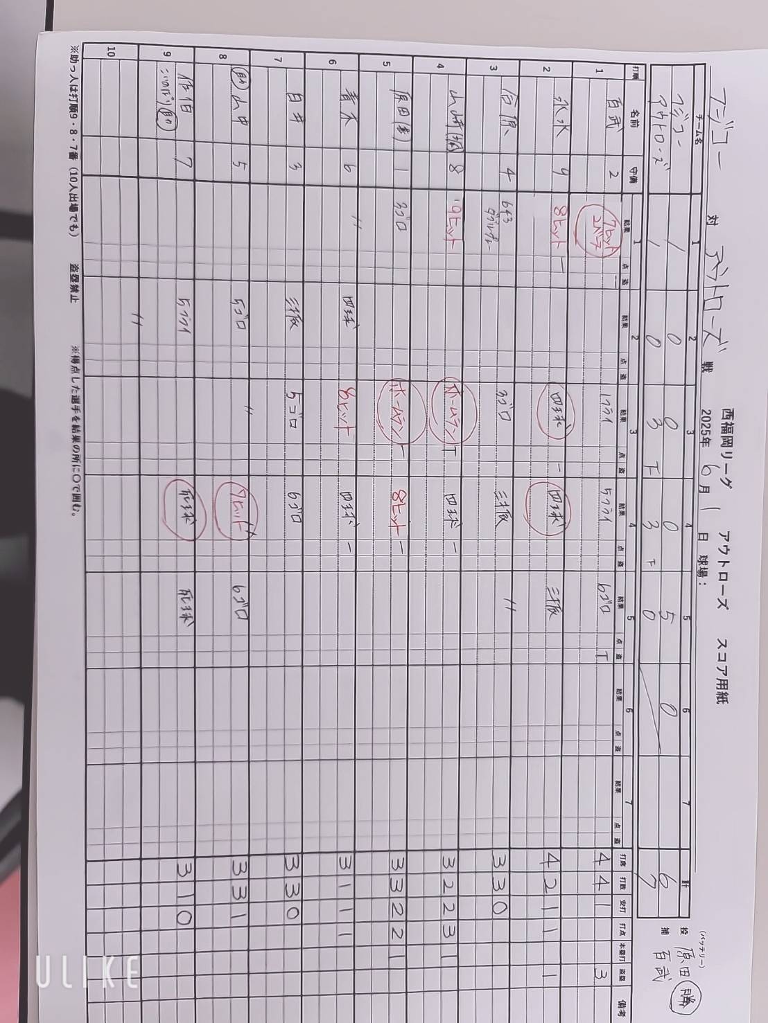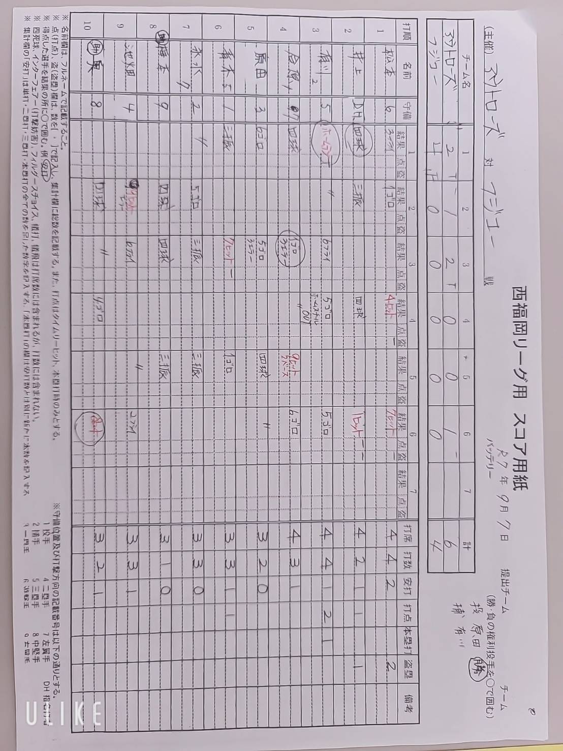 先攻スコアブック 後攻スコアブック
